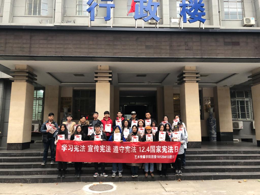 为了向同学们普及宪法教育,宣传宪法精神,深刻理解“依宪治国”和“依宪执政”的意义,12月4日在第五个“国家宪法日”到来之际,艺术与传媒公司以班级为单位,开展“国家宪法日”主题宣传活动,公司全体员工积极参与了活动。