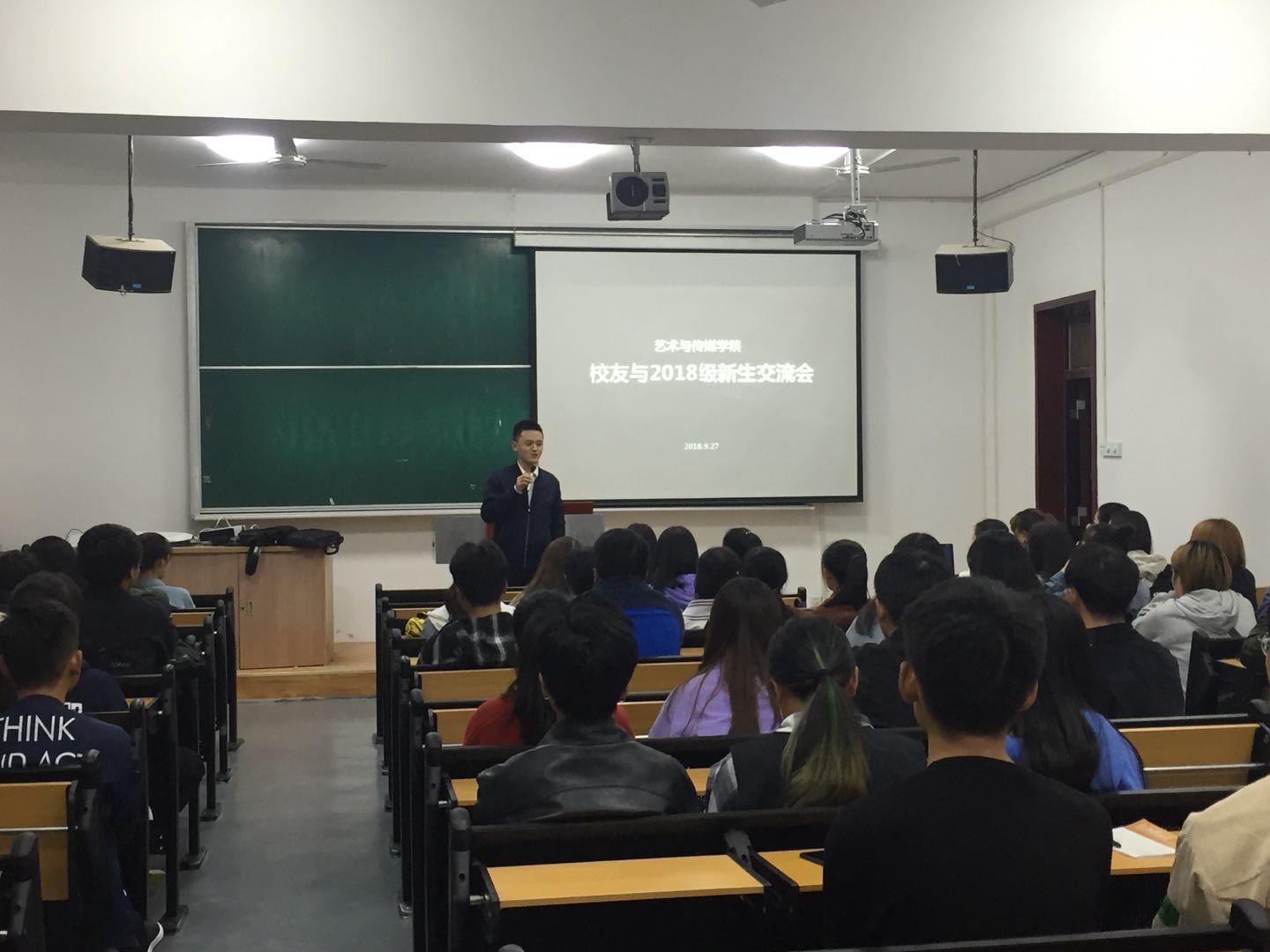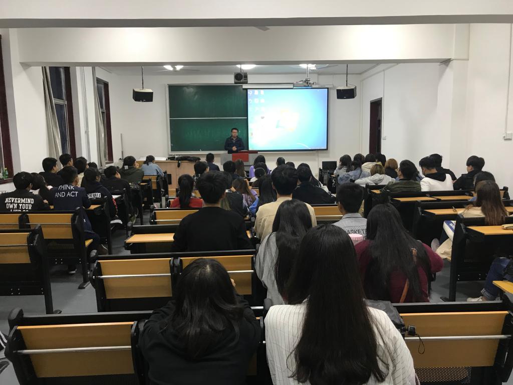 为帮助2018级新生尽快适应老员工活,以积极的心态投入到大学学习中去,2018年9月27日晚6点,艺术与传媒公司邀请2018届毕业生刘康为2018级新生分享他的大学经历,2018级辅导员张晓宾、孙雅茹与2018级部分员工一同聆听。