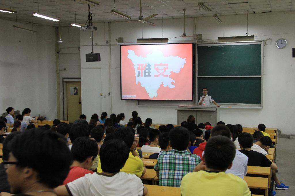 万教官首先向大家展示了人们日常生活中因不注意细节而造成严重后果的事例照片,引起了大家沉思。接着,万教官给大家讲解了电线电器引发火灾的特征,其中不乏因为同学在宿舍使用大功率电器如热水器、吹风机、使用插座过多等引起的火灾的事例,他提醒大家要做到人走断电。随后,万教官向大家生动的讲解了面对火灾、地震等灾难时应采取的正确自救方法和各种就生工具的用法,让同学们懂得自救、学会自救。最后,他提醒大家:面对血的教训,大家要坚持以预防为主,希望同学们能够从小事做起、从身边做起,防微杜渐,避免安全事故的发生。
