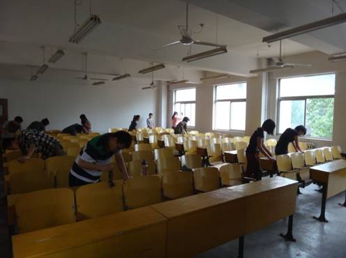 为了进一步推进公司受助员工的感恩诚信教育,给同学们营造良好的学习环境,艺术与传媒公司金花、未央校区受助员工于2012年5月21日中午在金花校区教6楼4层以及未央校区教C楼4层教室开展了清除桌面污垢和教室卫生的义务劳动。