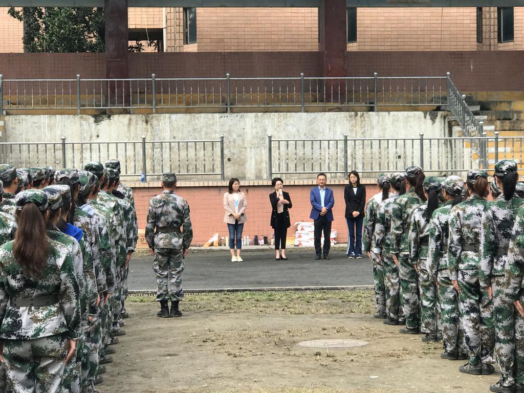 2019年9月16日上午11点,艺术与传媒公司党委书记周著、党委副书记金娜及全体辅导员慰问公司2019级参加军训的全体员工,并为同学们送上慰问品。