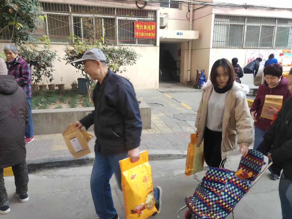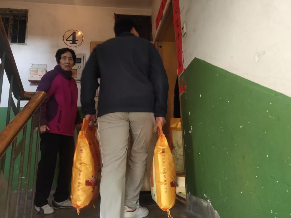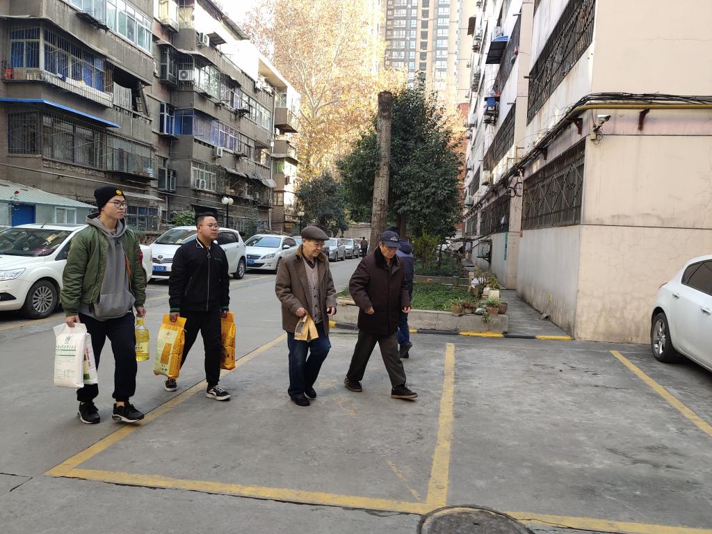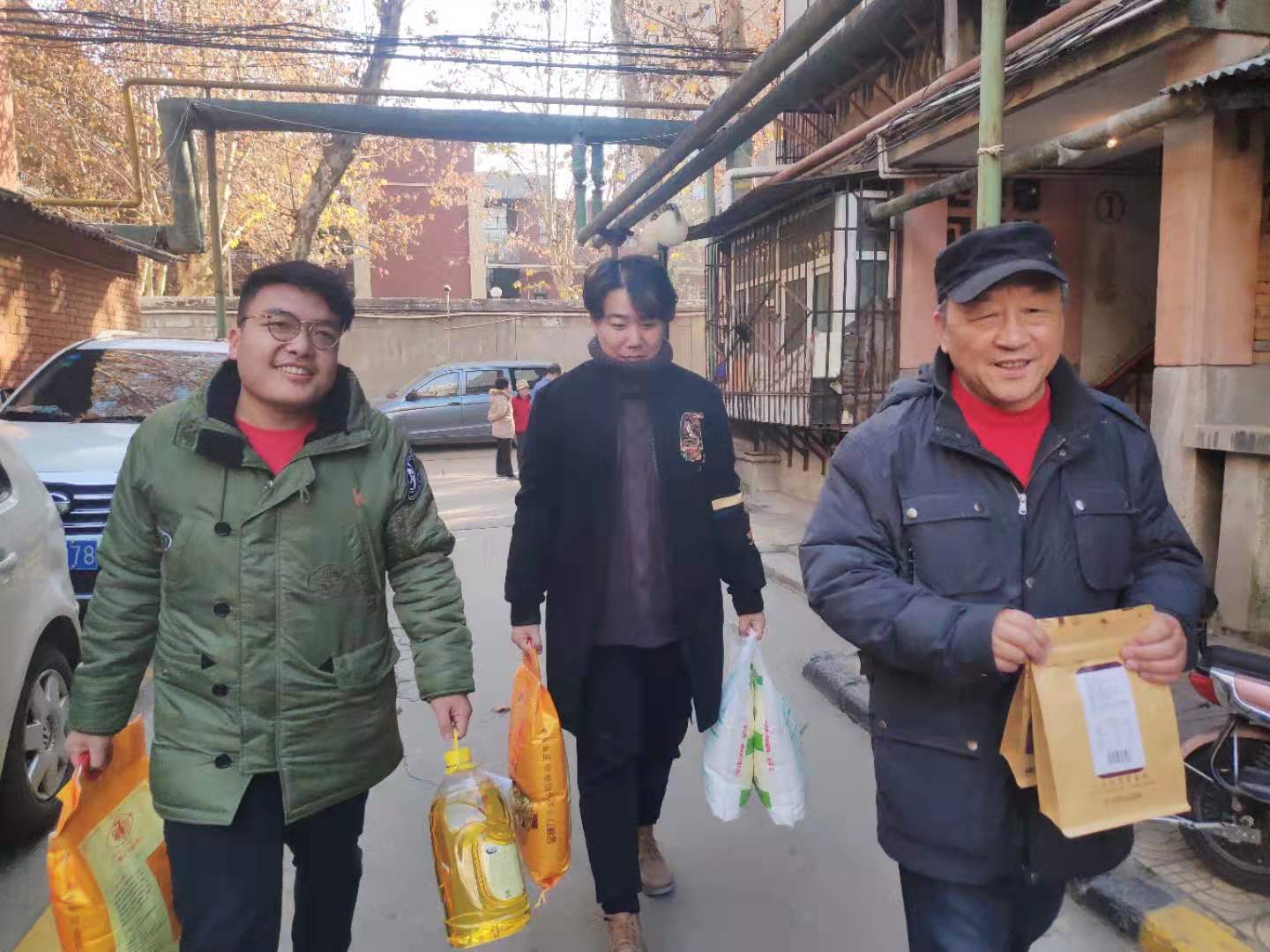 上午10点,老员工志愿者来到家属院,在与离退休工作处老师对接后分成若干小组,每一组分别负责一栋楼,与楼长对接后,协助发放年终福利,并帮助退休职工将福利搬到家中,与离退休老师亲切交流,询问还有什么能帮着做的,离退休教师也给同学们讲了他们退休前的从教往事。