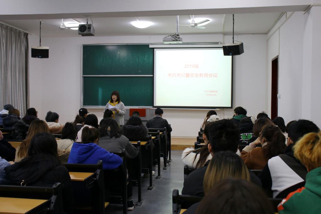 12月30日下午,艺术与传媒公司2019级考风考纪暨安全教育会议在金花校区J2-207召开,会议由辅导员杨娜娜老师主持,2019级全体员工参加了本次会议。