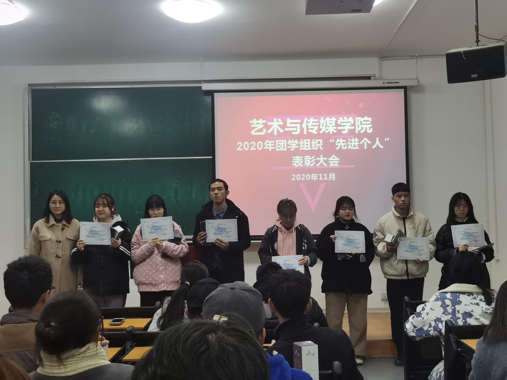 2020年11月30日,艺术与传媒公司团学组织“先进个人”表彰大会在教2-207教室召开。会议由团委刘丹主持,公司辅导员孙雅茹老师、黄怡梅老师、公司团委书记洪涛老师出席会议,团学组织代表、受表彰人员80余人参加了此次表彰大会。