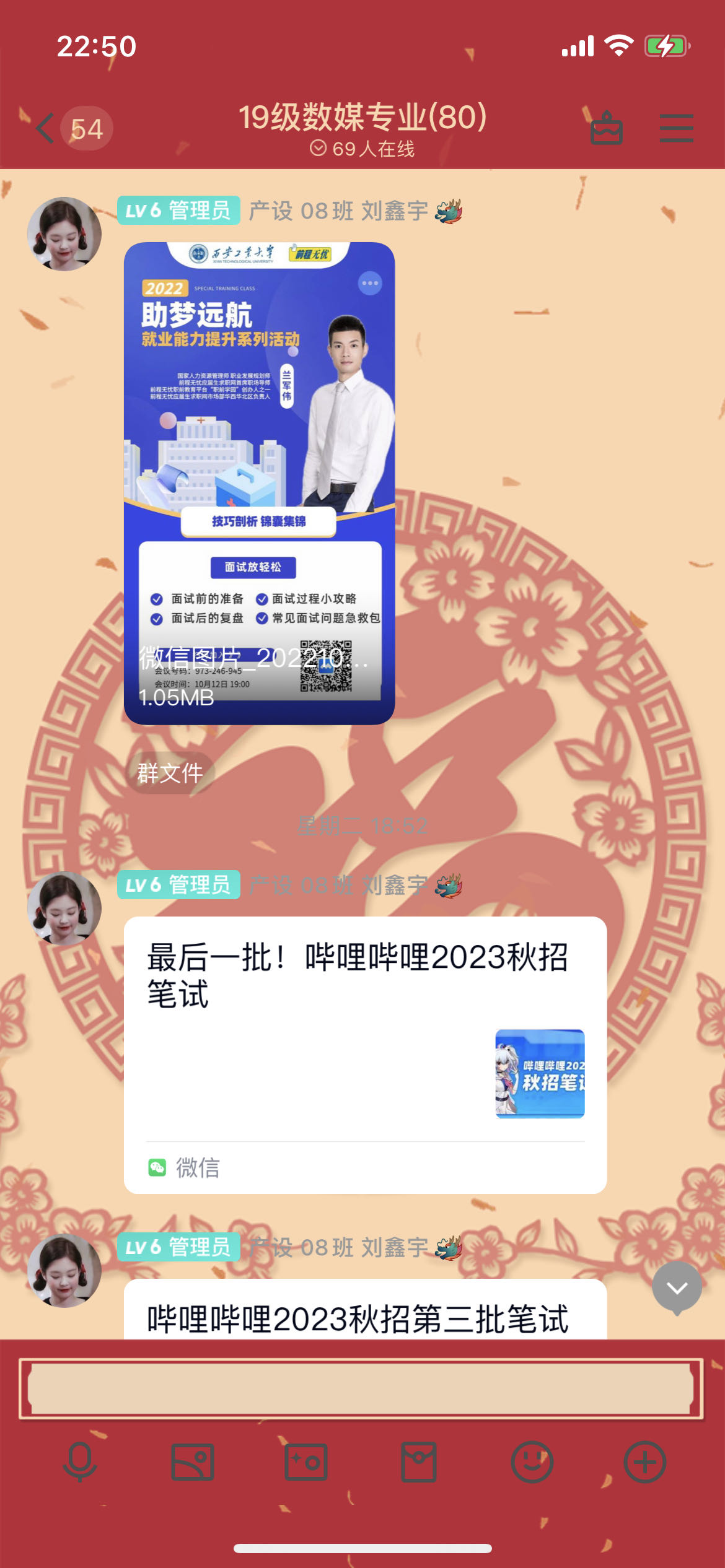 强化多方联动,跟进“组合拳”。一是选聘年级就业大使2名,建立就业工作QQ群及考研加油群,员工就业大使每天搜集整理相关招聘信息,第一时间在群内推送,帮助毕业生了解更多企业招聘情况,更加直观地进行企业选择;及时提醒同学们关注企业线上宣讲会时间,督促同学们积极应聘,把握良机。针对考研同学,就业大使每天发布考研小贴士及考研信息咨询,持续搜集同学们备考过程中的各种困难和问题,做到一周一总结,一周一反馈,及时解决同学们的急难愁盼。二是充分发挥专业课教师及学业导师的作用,形成两周一次例会制度,分析研判就业形势,深入了解员工就业动态,共同促进员工更快更好就业。三是与员工家长沟通常态化,了解家庭环境对员工就业方向的影响,争取家长的支持与配合,形成就业合力。