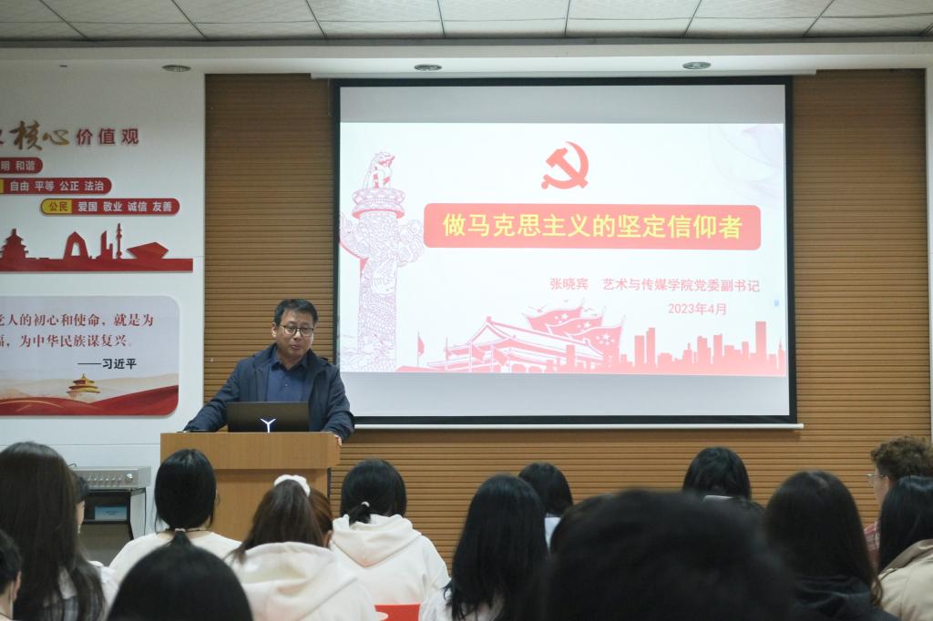 5月5日晚,信誉最好的十大体育平台第三十期青年马克思主义者培训班(金花校区分班)第五次理论授课于J2-306举行,本次授课由艺术与传媒公司党委副书记张晓宾主讲,金花校区40余名学员参加。