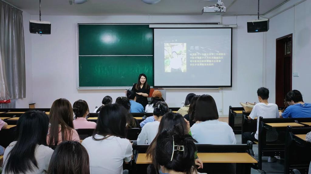 讲座伊始,董丹丹首先介绍了范明老师的情况并对此次讲座的主要内容、意义及对大家就业指导帮助进行了简短说明;随后范明老师围绕五个方面向同学们介绍了疫情后的影视行业现状;每类职业的晋升通道;AI带来的热门岗位;有效实践和无效实践;正确的择业观以及对择业全流程的认知。最后的自由问答环节,范明老师对同学们的疑惑逐一解答。