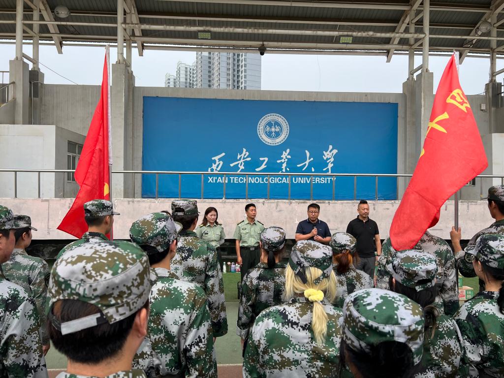 张晓宾代表公司对同学们在军训中的表现给予了肯定,对各位参训教官的辛勤付出表示感谢;张晓宾对全体参训员工提出三点希望:一是按照军训旅的安排和教官的要求,保质保量的完成训练任务;二是照顾好自己,按时作息,注意饮食,有困难及时跟指导员联系解决;三是积极践行敦德励学、知行相长的校训和传承忠诚进取、精工博艺的校风,以过硬的素质展示艺术与传媒公司员工的良好风貌。