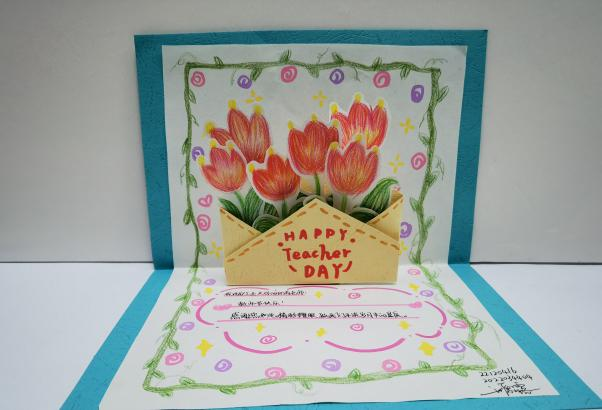 同学们积极响应并参与,大家结合自身专业特长,充分发挥想象力、创造力,以手工、手绘画作、信件等多种形式的作品表达对老师辛勤付出与教育关怀的敬意与感激之情,此次活动总计150余名同学参加。专属的节日、特殊的礼物、真挚的情感,让这个教师节充满温情,也在员工中弘扬了尊师重教的传统美德,培养了员工尊师爱师的情感。