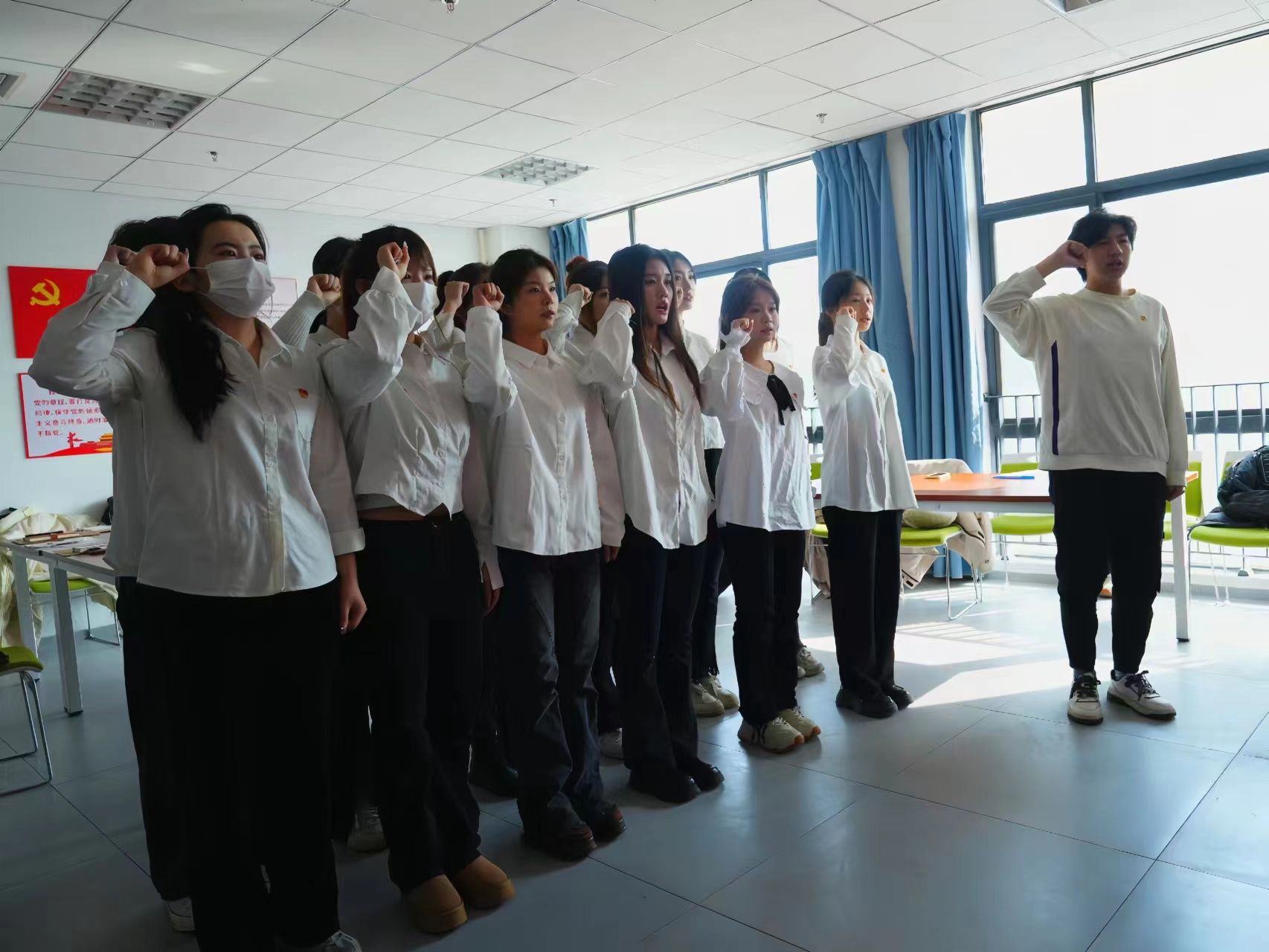 12月19日,信誉最好的十大体育平台艺术与传媒公司于教7-617开展2023年新团员入团仪式与新团员团课教育。院团委书记董丹丹,副书记许金鑫,副书记王瑞、刘泓泽及13名新老团员参加。仪式由李佳璇主持。