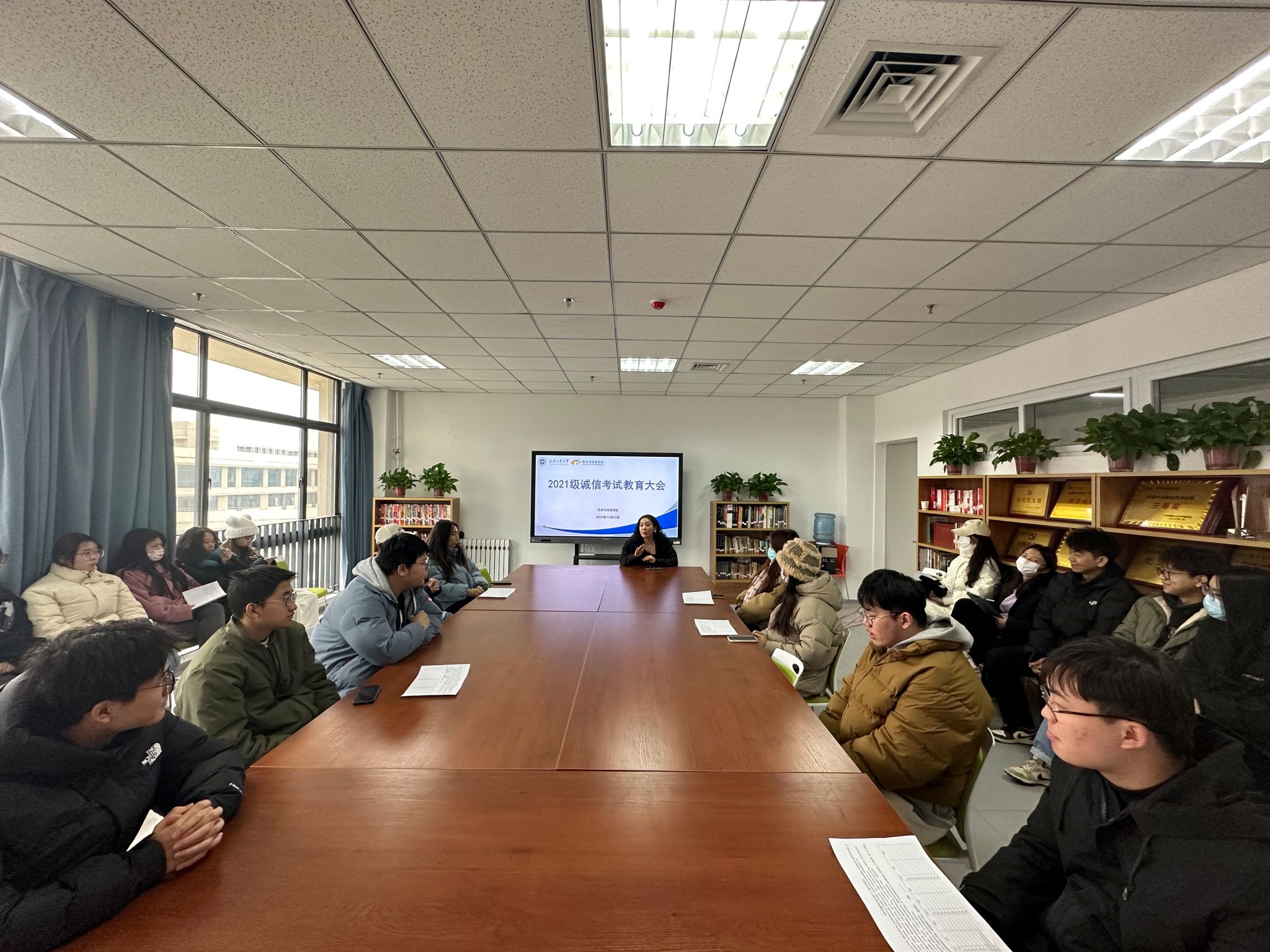 期末考试即将来临,为加强同学们的诚信意识教育,认真复习备考,12月28日,艺术与传媒公司各年级召开主题教育大会,会议由各年级辅导员主持。