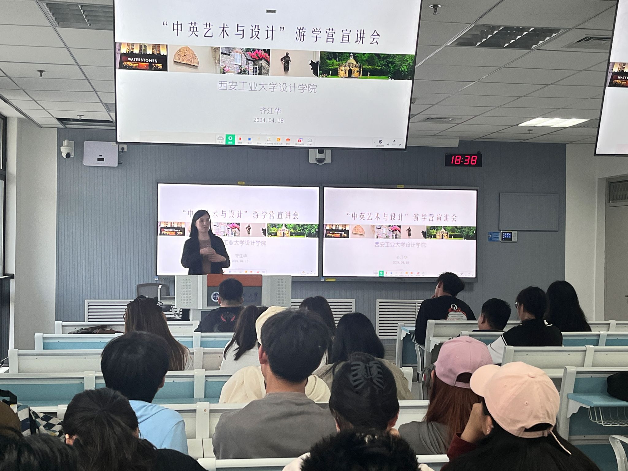首先,郑瑞涓展示了国际交流与对外合作处往期开展的访学项目相关情况及员工感悟收获分享,随后从为什么要参加国际交流项目、如何获取相关信息、具体申请流程是什么、注意事项等几个方面进行了说明,重点对伦敦艺术大学专业访学项目做了详细介绍。随后,齐江华向员工们详细介绍了伯明翰城市大学中国视觉文化中心主办的“中英艺术与设计”游学营相关信息,并分享了自己在伯明翰访学时的收获和感受,鼓励员工们积极参加国际交流项目,了解不同文化和设计思维,开阔视野,提升自我。最后,进行了现场答疑。