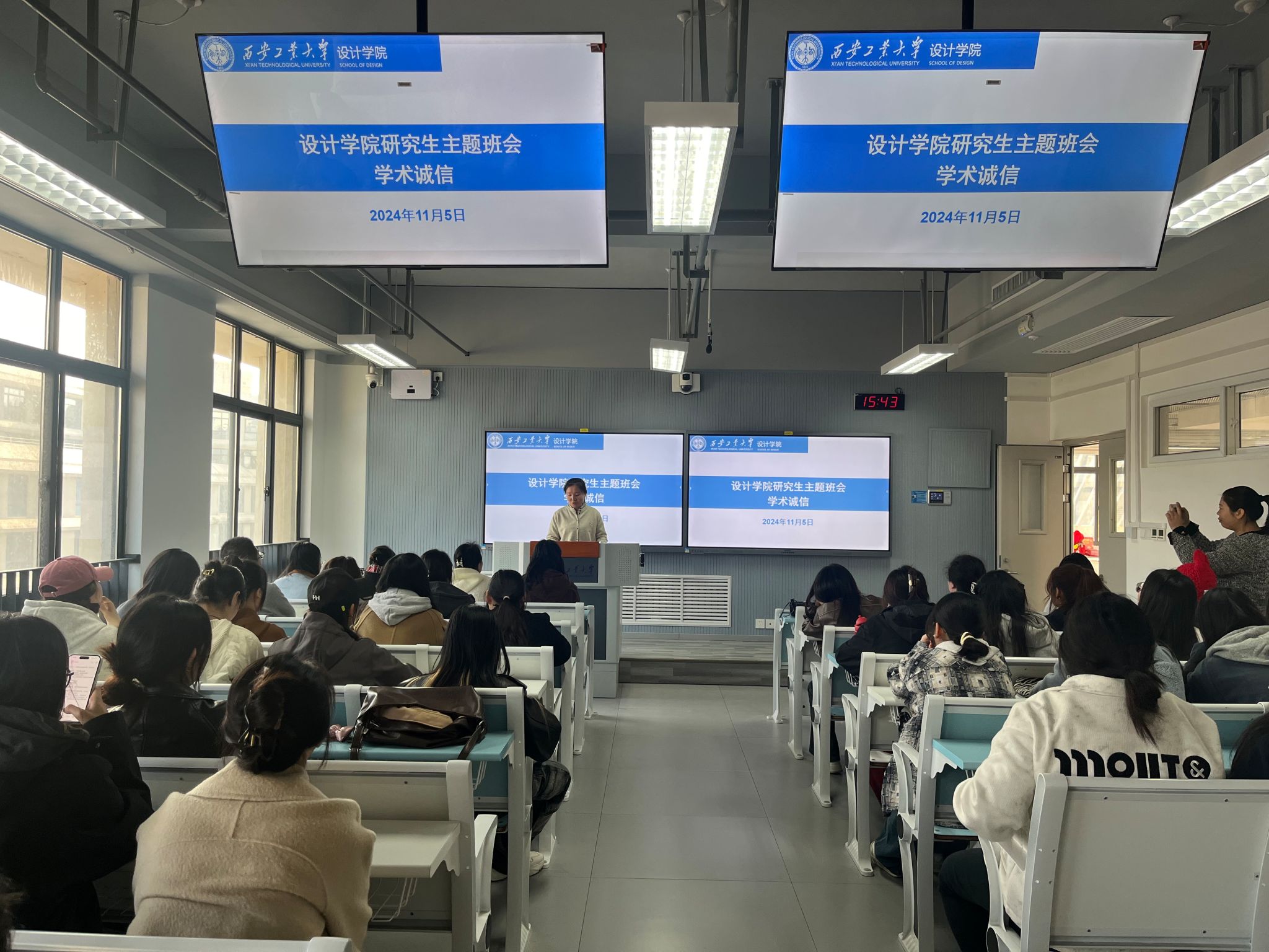 会上,贾宇星强调了学术诚信在科研工作中的重要性,并详细讲解了科研中应当遵守的学术规范。她提醒同学们,学术诚信是科研人员的基本素质,也是维护学术纯洁性的关键,引导同学们树立正确的科研态度和价值观。她鼓励大家加强自律,提高研究能力,自觉抵制任何形式的学术不端行为。与会的研究生们纷纷表示,通过此次班会,他们对学术诚信有了更加深刻的认识和理解,将严格遵守学术规范,保持学术诚信。