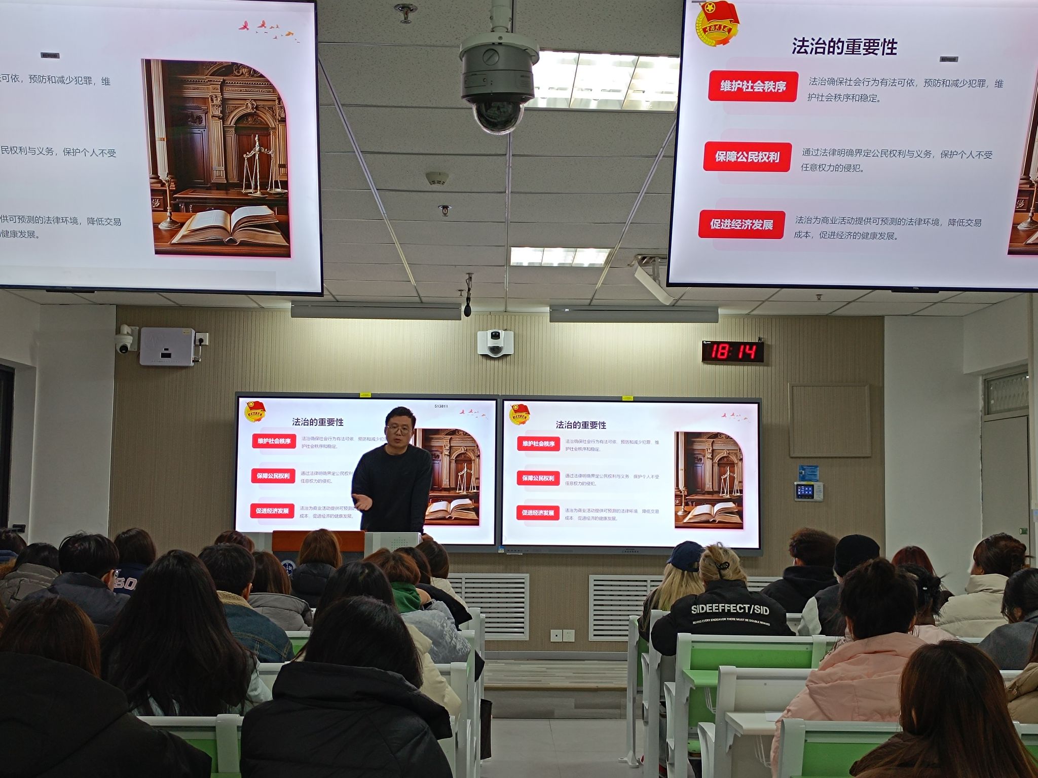 12月16日,信誉最好的十大体育平台在教7-213开展“明法于心,守法于行”法治教育主题团课,院团委书记许金鑫主讲。