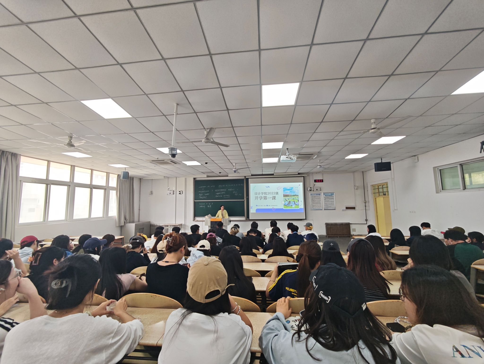 9月3日,2022级全体在校员工在教1-101开展开学第一课,辅导员陈辛主持,重点围绕围绕爱国主义教育、日常管理规范和毕业就业等方面内容展开。