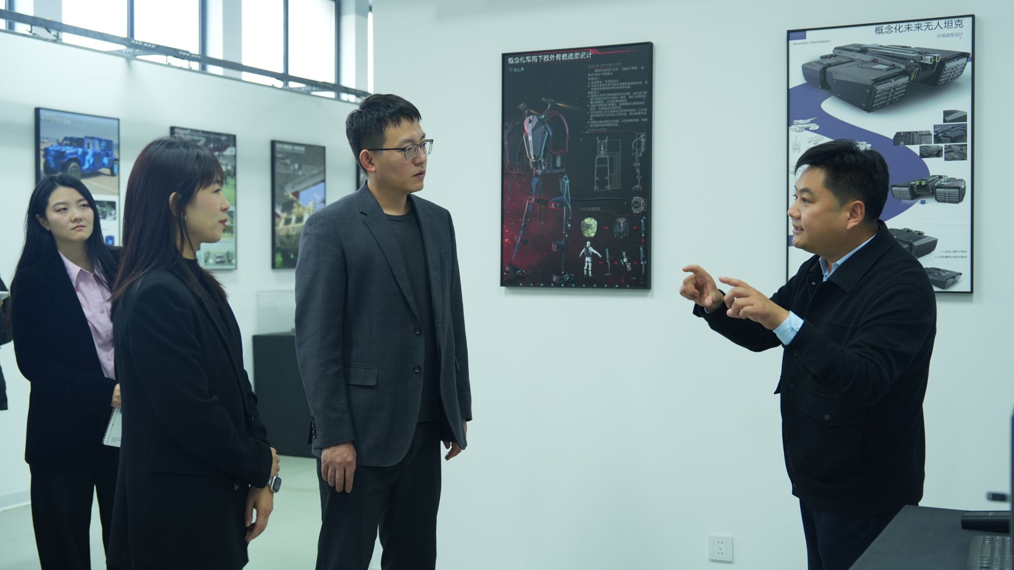 在周倩等人的陪同下,宋振航一行首先参观了兵器美学美育中心及公司2024级研究生实践课程优秀作品展。