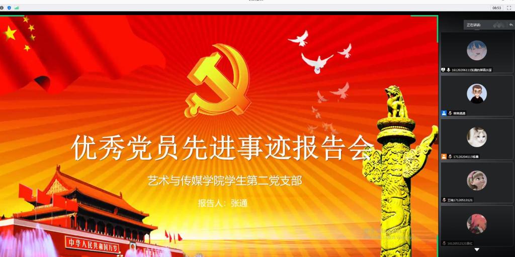 在中国共产党成立99周年之际,为了积极发挥优秀共产党员的示范引领作用,在全体党员中营造学习先进、争做先进的良好氛围,2020年6月30日下午,艺术与传媒公司员工第一、第二和第三党支部集中开展云端优秀共产党员先进事迹报告会,报告会由公司党委委员、员工第三党支部书记张晓宾主持,公司党委副书记金娜、员工第一党支部书记孙雅茹、员工第二党支部书记杨娜娜出席报告会,105名员工党员参加了会议。