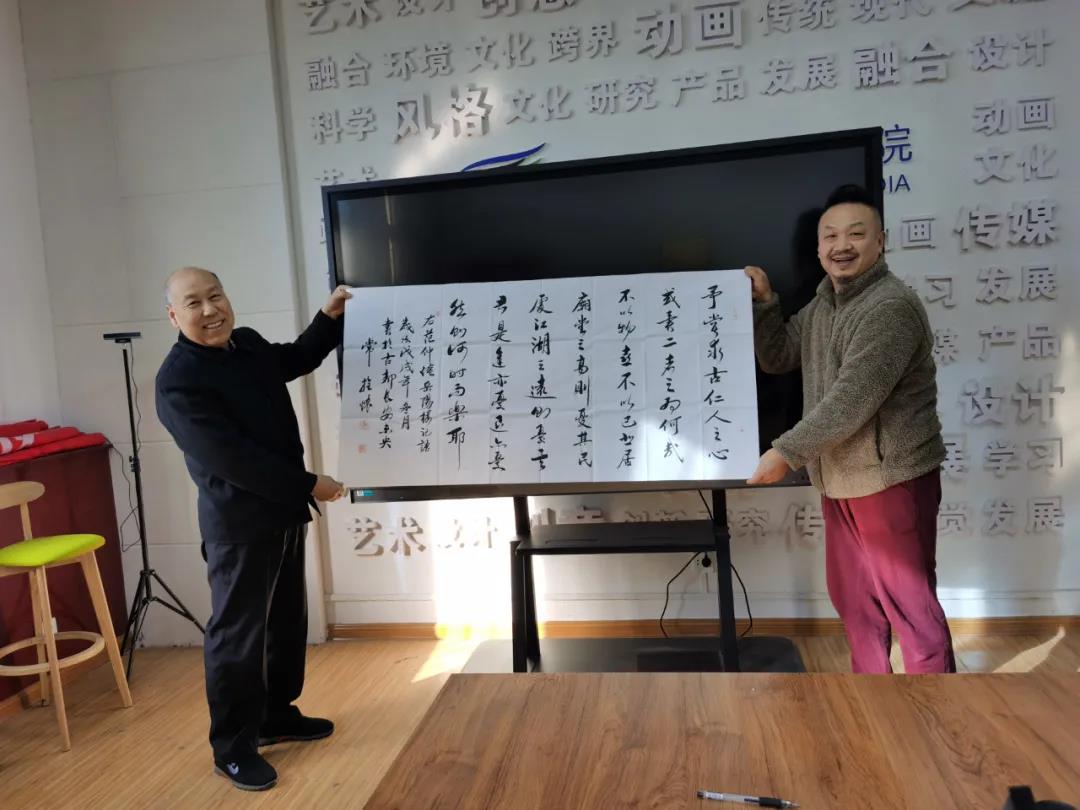 2月1日,艺术与传媒公司在J2-202阅览室召开退休职工座谈会,公司党委书记周著、经理苏胜、院工会主席王光奎参加了会议,会议由周著主持。与会人员同退休教师常拴怀就公司发展、团队建设、教学质量提升等方面开展了交流。周著代表公司向常老师表达了慰问并赠送礼品,常老师向苏经理赠送了书法作品。