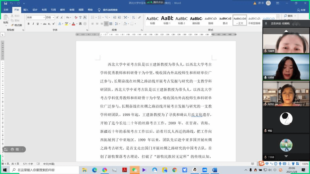 3月8日,产品设计系在线上通过腾讯会议的形式,组织全系教师学习“三秦楷模”路生梅、张雷威和西北大学中亚考古队的先进事迹,会议由系主任李源主持。