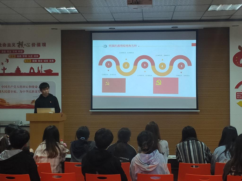 接着,由董易豪同志为大家讲解了“党旗与党徽”的演变历程和意义,并与全体党员分享了自己学习体会。