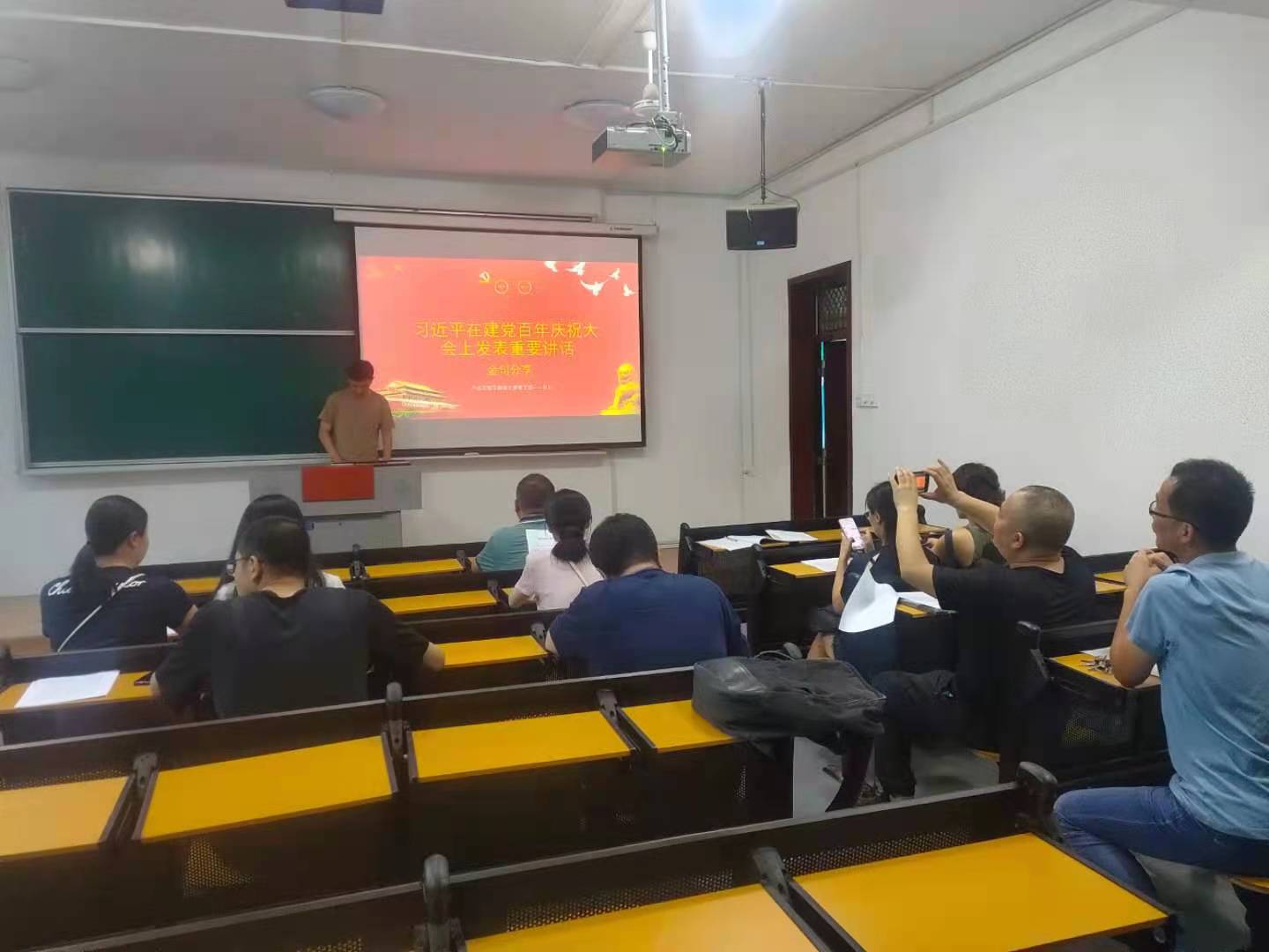 会上,支部书记丁西蓓领学了习近平总书记在庆祝中国共产党成立100周年大会上的重要讲话内容;张耘老师分享个人体会,题目:“七一讲话”金句分享;陈俊峰、马瑞萍等同志分别发言,谈了个人的学习感想。大家纷纷表示作为党员教师要坚定理想信念,保持政治清醒,在对党绝对忠诚的行动中显初心,坚持社会主义方向,切实加强马克思主义理论和党的创新理论武装,落实“四个服务”的要求,抓好员工思想政治工作,为党育人、为国育才。