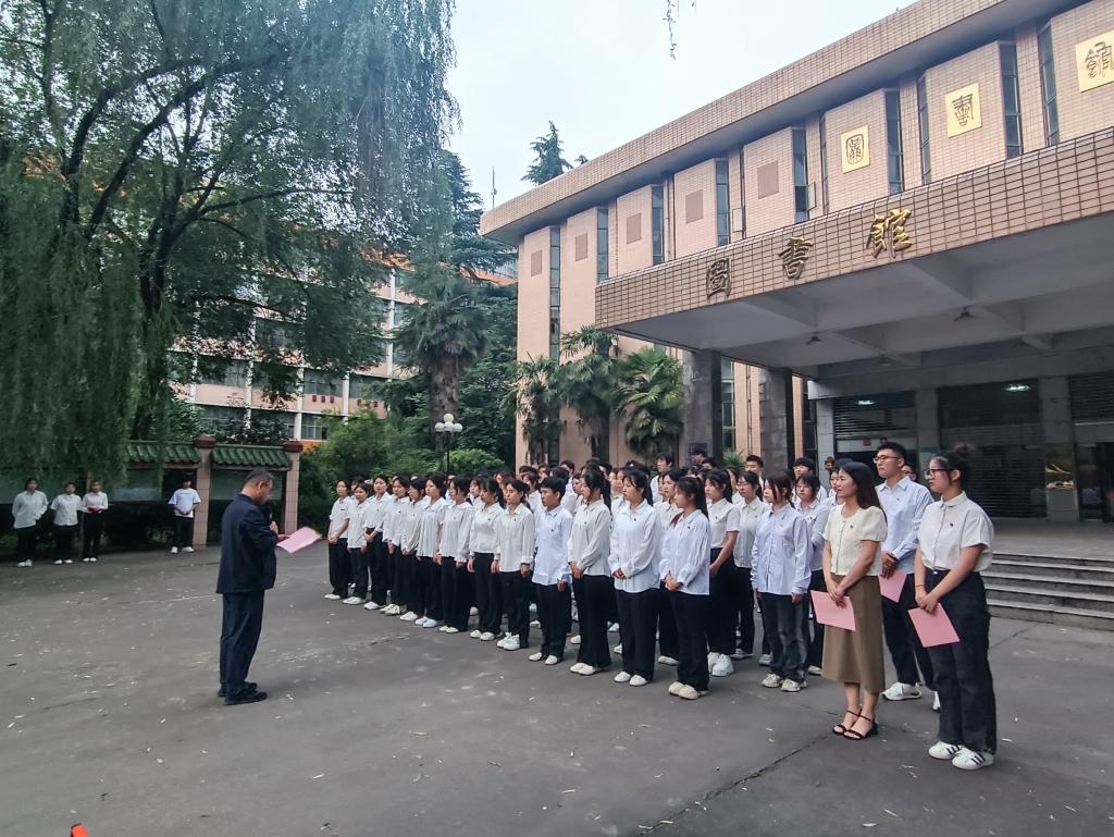 6月19日在金花校区图书馆前,公司举行2023年上半年预备党员入党宣誓活动。公司党委副书记张晓宾、员工第二党支部书记董丹丹、公司组织员张秀丽参加,宣誓仪式由员工第二党支部副书记潘洋澜主持。