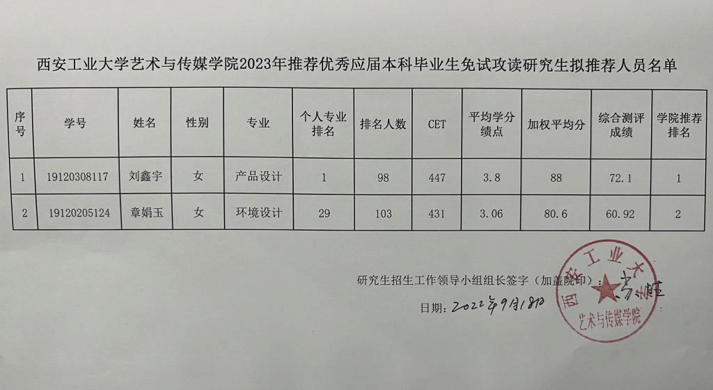 (公示)信誉最好的十大体育平台艺术与传媒公司2023年推荐优秀应届本科毕业生免试攻读研究生拟推荐人员名单