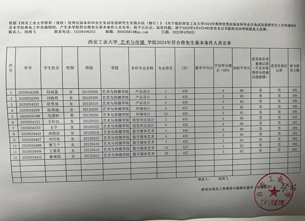 (公示)2024年--艺术与传媒公司符合推免生基本条件人员名单