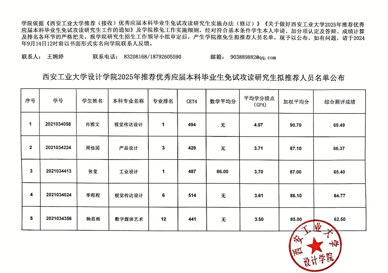 2025年推荐优秀应届本科毕业生免试攻读研究生拟推荐人员名单公布