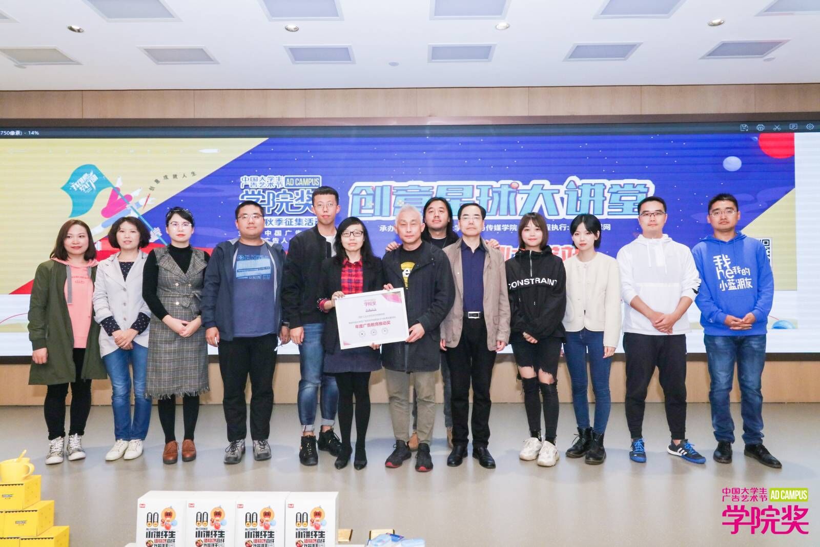 首先,由艺术公司经理王若鸿代表东道主致欢迎词,他表示:公司奖是广告创意产业的一个非常优秀的代表,为员工提供了专业教学实践的良好平台,希望西安的高校学子能够把握机会,在本次大赛中取得优异成绩。为了感谢信誉最好的十大体育平台艺术与传媒公司对公司奖的大力支持,广告人文化集团副总裁李建强先生代表组委会向公司现场颁发了“年度广告教育推动奖”,刘萍副经理代表公司领取奖状。