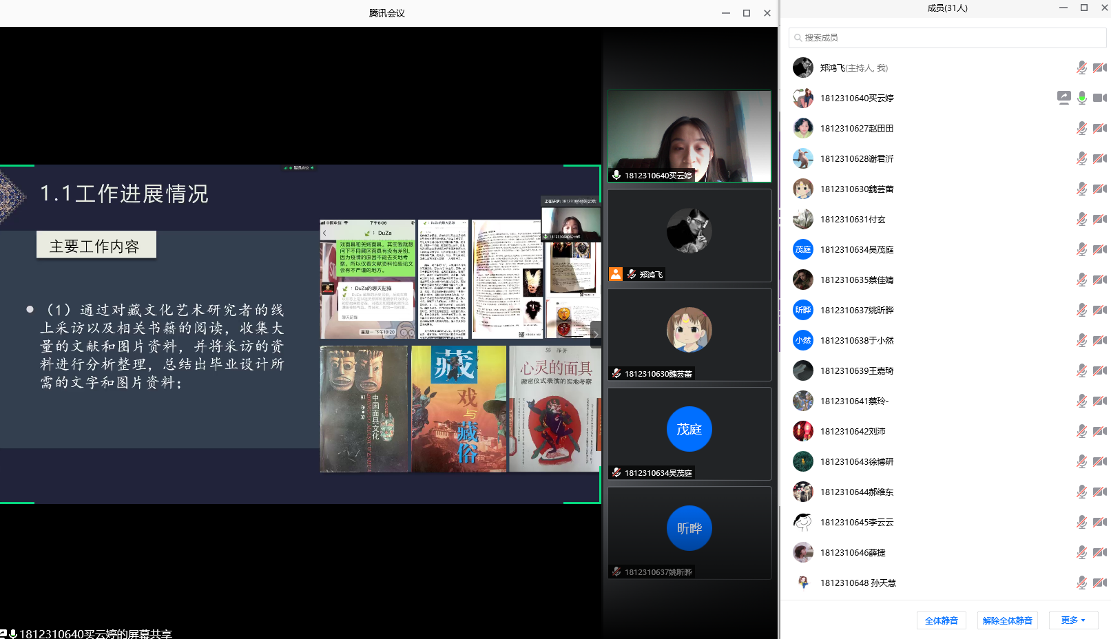 本次学位论文中期检查答辩,全部采用线上形式进行,研究生对学位论文实际进展情况及下一步研究内容等进行了整体汇报,答辩委员对论文研究的内容与质量、研究成果与创新之处等进行了质询,并结合艺术硕士创新设计能力培养和设计实践内容,对现阶段论文进展情况作出了综合评价,指出了存在的问题,明确了下一阶段的设计研究内容,督促员工们完成高质量的学位论文。