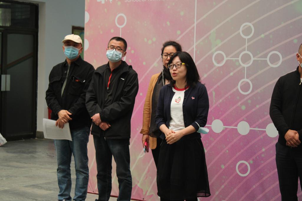 刘萍发表致辞,指出本次展览作品质量佳,创意及完成度比较高,不仅反映出研究生对专业课程的热爱,同时,也是对公司产品第一阶段的教学成果检验,课程作品集中展现了公司艺术硕士研究生的专业课程实践成果。