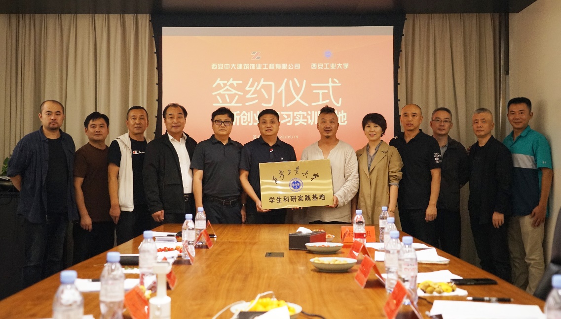 9月19日下午,艺术与传媒公司与西安中大建筑饰业工程有限公司,在融城云谷举行校企合作签约仪式暨员工科研实践基地授牌仪式,经理苏胜、副经理姚文婷及环境设计专业骨干教师出席活动并签约。