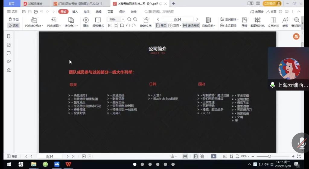 12月20日上午,数字媒体艺术专业组织开展2022年下半年访企拓岗与线上招聘会。公司党委书记周著、经理苏胜、副书记张晓宾、辅导员杨娜娜,数字媒体艺术系教师代表田朋、毛晓东,上海云础网络科技有限公司副总经理万长城、校企合作主管李鑫参加。会议由数字媒体艺术系主任于振玺主持。