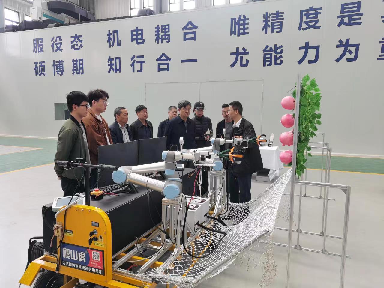徐洪星一行先后参观了公司智能机器人联合实验室、机械工程实验室。重点考察了石榴采摘机、核桃破壳机等林果机械设备研究成果,详细了解了公司创新人才培养能力与特色研究成果。