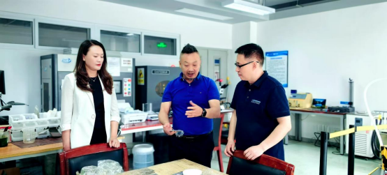 闫莉向来宾全面介绍了公司美育教育的布局及美育实践教学工作开展情况。苏胜带领来宾参观了兵器美美育中心,介绍了中心发展和建设成果。在随后的交流会上,张浩高度赞扬了公司兵器美学学科特色及美育中心建设成果,希望两校设计学科能从服务于国之大器的角度出发,通过研究生联合课程、联合展览、相互参与国防项目等方式,全面加强两校教学、科研合作,树立地方专业院校和综合院校的合作典范。