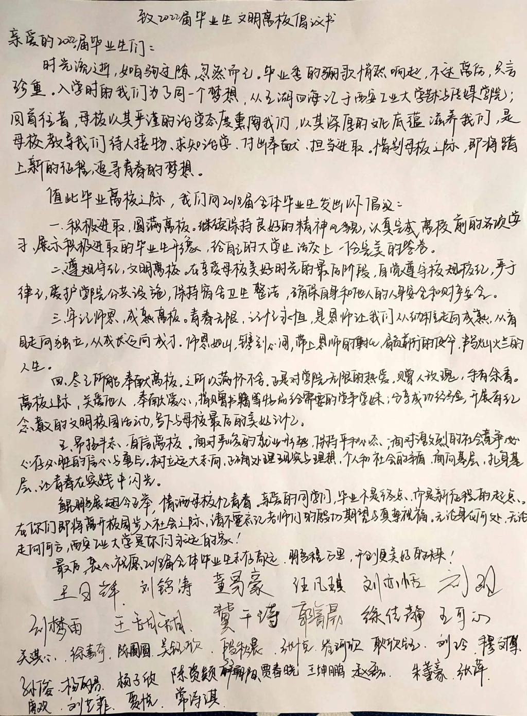 友好互助,树一面旗帜。支部起草毕业生文明离校倡议书,倡议党员积极地参与毕业生文明离校的各项工作中,关注并帮助解决身边同学毕业离校疑难问题,支部毕业生党员将有价值的课本、书籍,捐献给低年级党员,共捐赠课本教材及考研资料50余册,展现党员精神风貌“站好最后一班岗”,齐心协力共同营造文明有序、和谐安全的离校氛围。