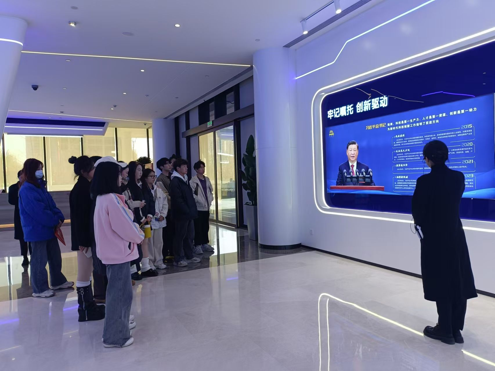 在秦创原综合服务中心,党员同志们跟随讲解员观看了宣传片,详细了解了秦创原创新促进中心的建设历程和发展成果,它作为陕西省最大的孵化器和科技成果转化特区,汇聚了大量创新资源和人才,为员工提供了广阔的实践平台。在参观科技成果及氢能发展展示区,大家沉浸式地感受了基于秦创原平台的企业的创新科技孵化成果,包括增材制造聚醚醚酮定制式医疗器械、智慧绿色能源系统沙盘模型等前沿技术,让同学们对科技创新有了更直观的认识,也进一步对了解了秦创原的创新服务体系、产业布局以及取得的创新成果。大家纷纷表示,此次参观学习不仅拓宽了视野,也为未来的职业规划提供了宝贵的参考。