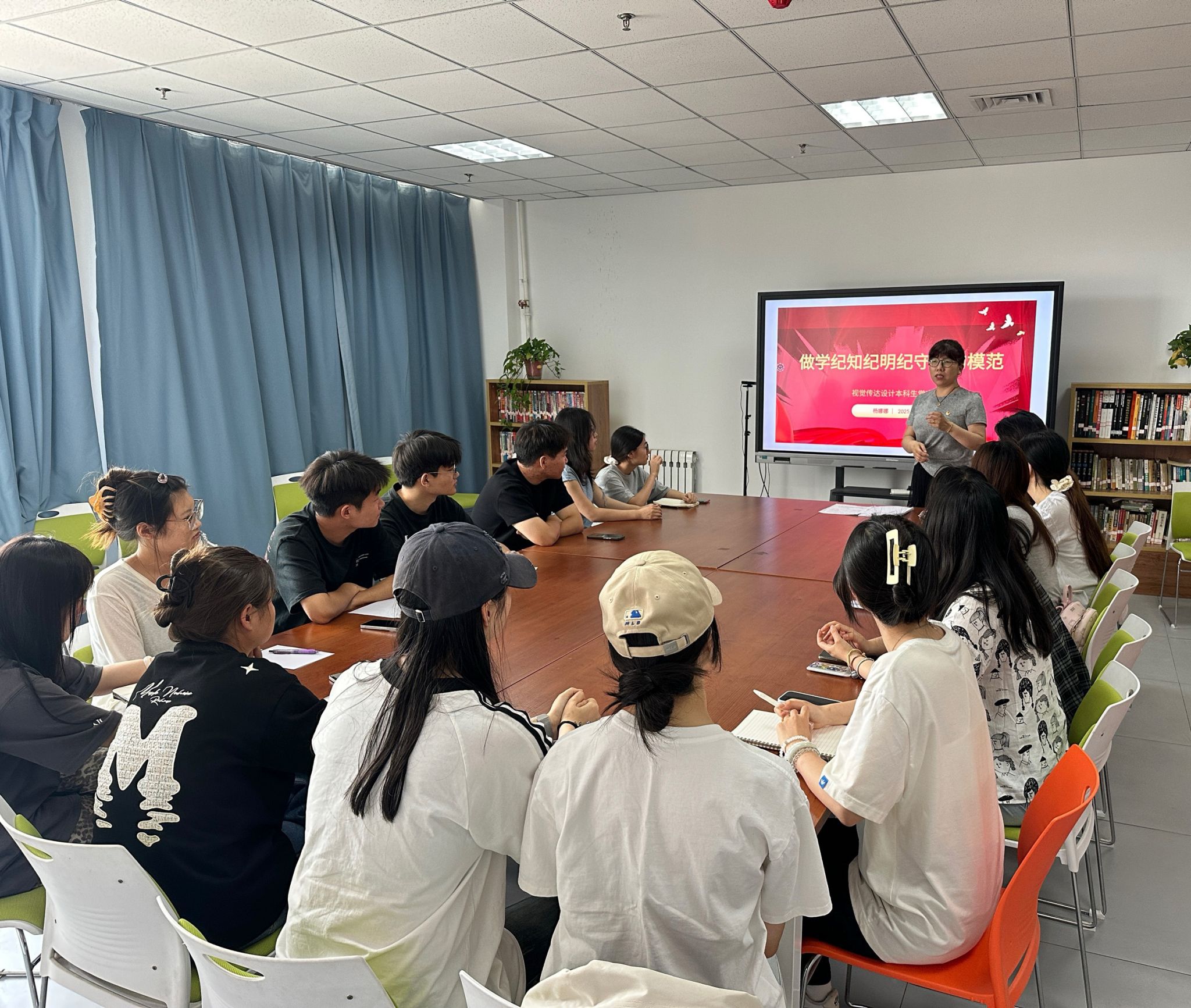 5月15日,视觉传达设计本科生党支部于教7-617开展“做学纪知纪明纪守纪的模范”专题党课。党课由党支部书记杨娜娜讲授。