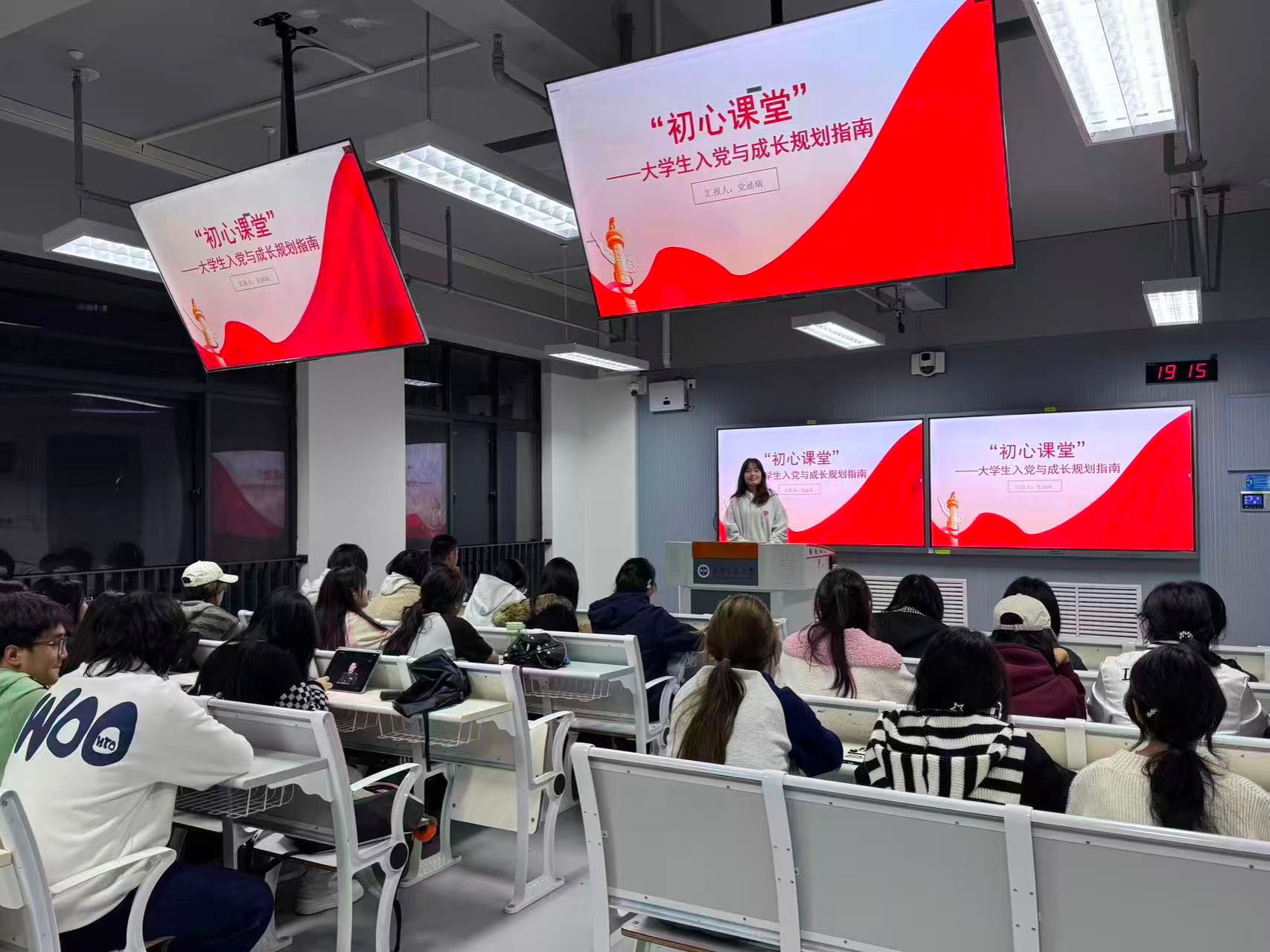 活动以“老员工入党与成长规划指南”为主题,2023级入党积极分子党涵瑞分享了成长经验。党涵瑞立足新生发展实际,从“政治追求锚定”“专业能力锻造”“实践担当锤炼”三个维度展开分享,阐释了入党标准的核心要义及流程规范。接着,详细讲述了专业课学习的分阶段进阶策略,从基础积累到创新突破,为新生构建科学的学业成长体系;最后,她结合自身参与志愿服务、专业实践的经历,生动传递“锐意进取守初心、服务奉献担使命”的青年追求,以朋辈榜样力量激发新生奋进动力。