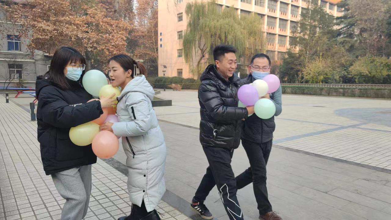 在其中的踩气球活动中,参与人员通过集体吹、运、踩气球的方式,充分释放了多日因紧张而积累的压力情绪,获得了老师们阵阵欢声笑语。