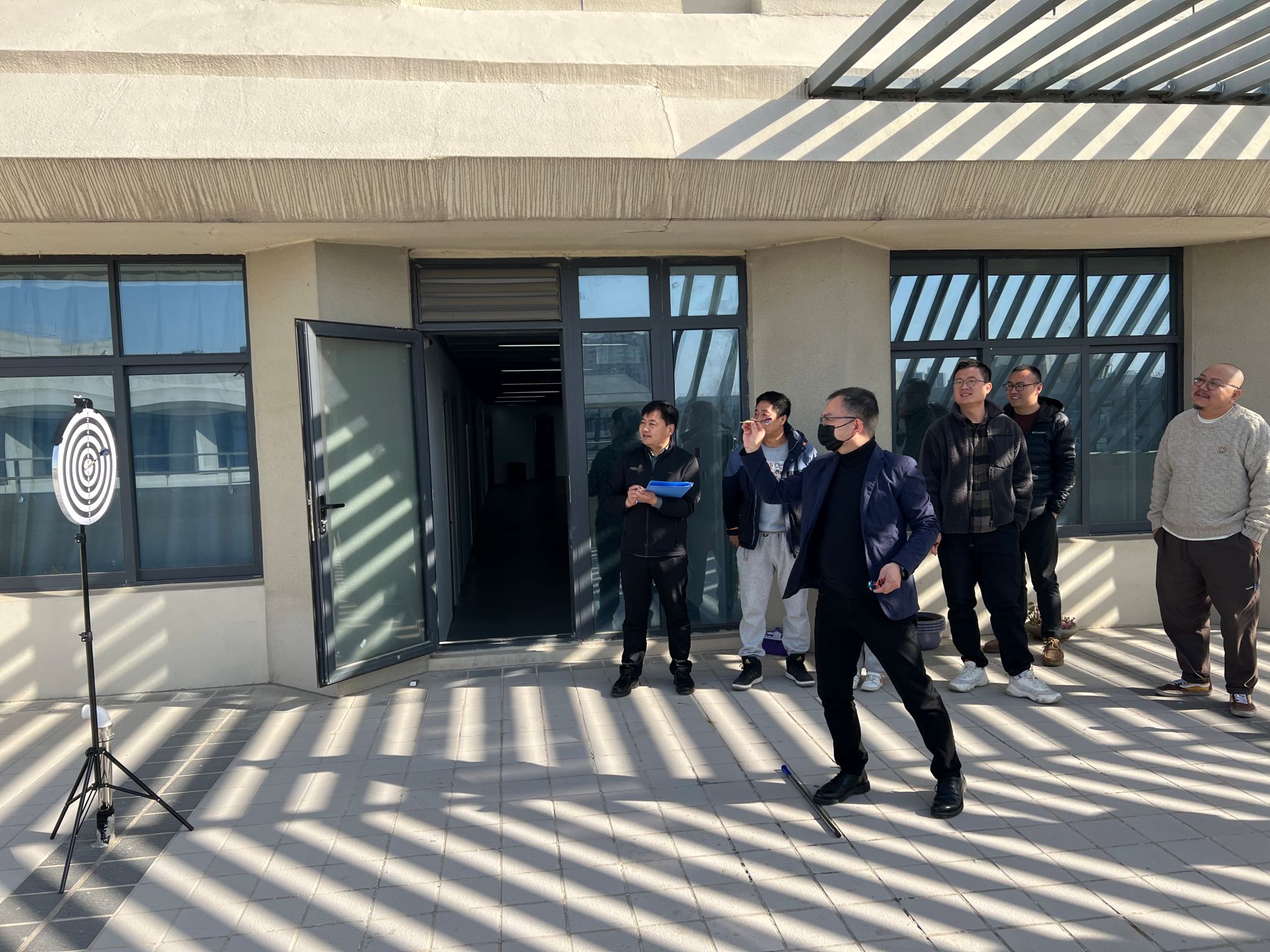 为丰富办公室教职员工的文体生活,活跃工作气氛,推崇健康生活理念,11月28日上午,办公室工会小组在教7楼6楼平台举办首届教职工飞镖比赛。全体办公室成员参加比赛。