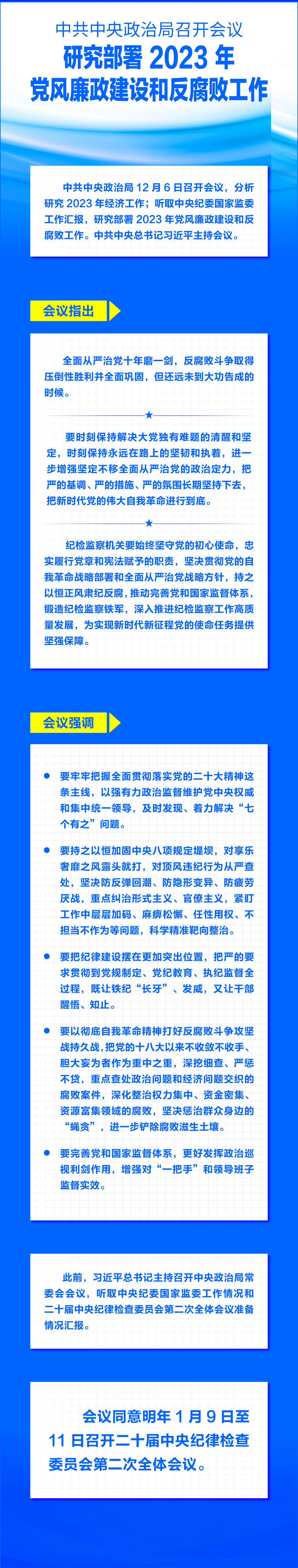 中共中央政治局召开会议 研究部署2023年党风廉政建设和反腐败工作