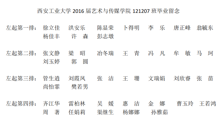 2016届艺术与传媒公司121207班毕业合影