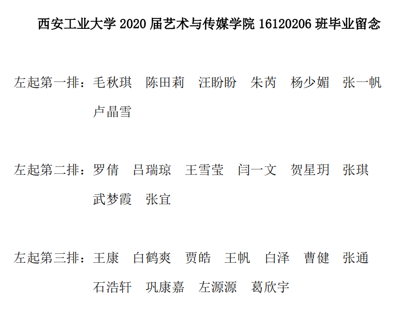 2020届艺术与传媒公司16120206班毕业留念