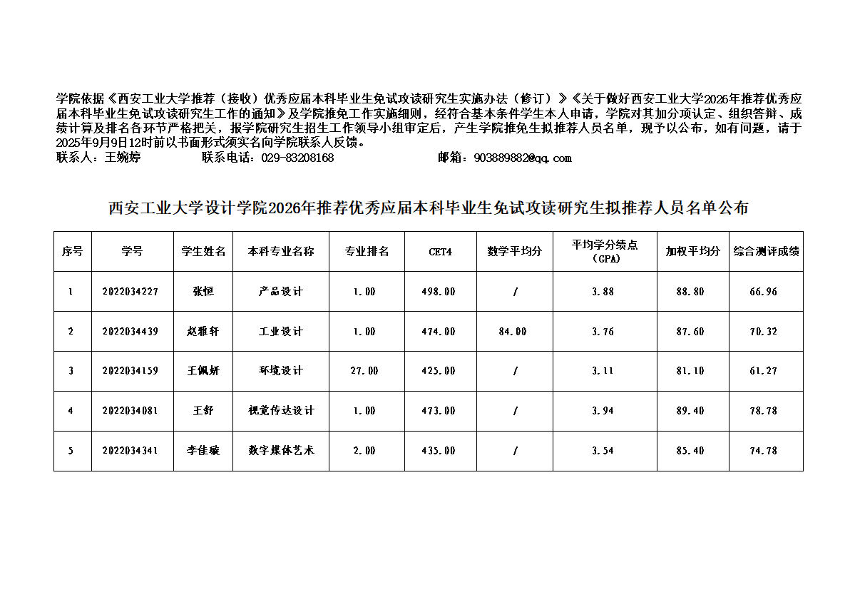 2026年推荐优秀应届本科毕业生免试攻读研究生拟推荐人员名单公布